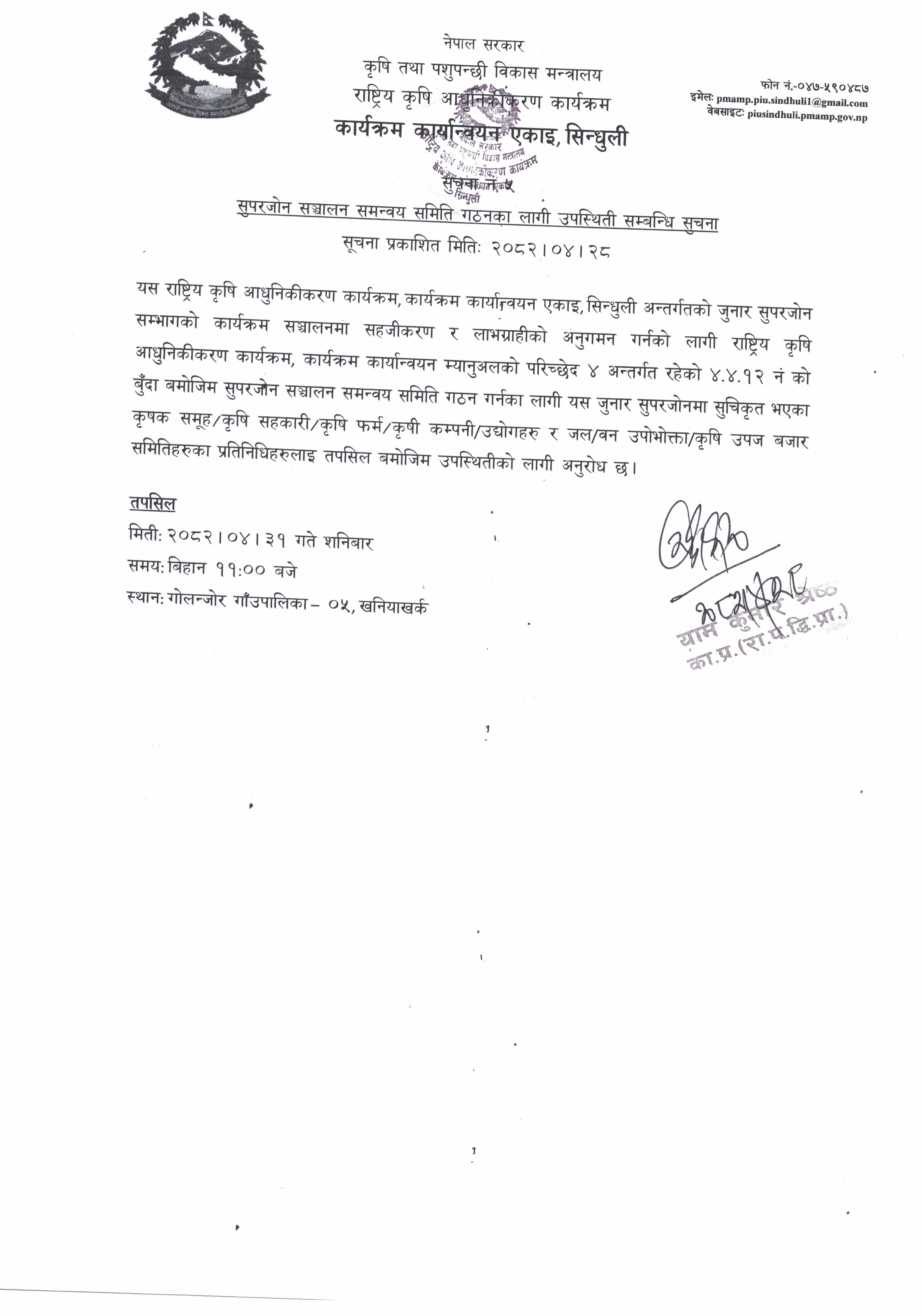 सुपरजोन सञ्चालन समन्वय समिति गठनका लागी उपस्थिती सम्बन्धि सुचना