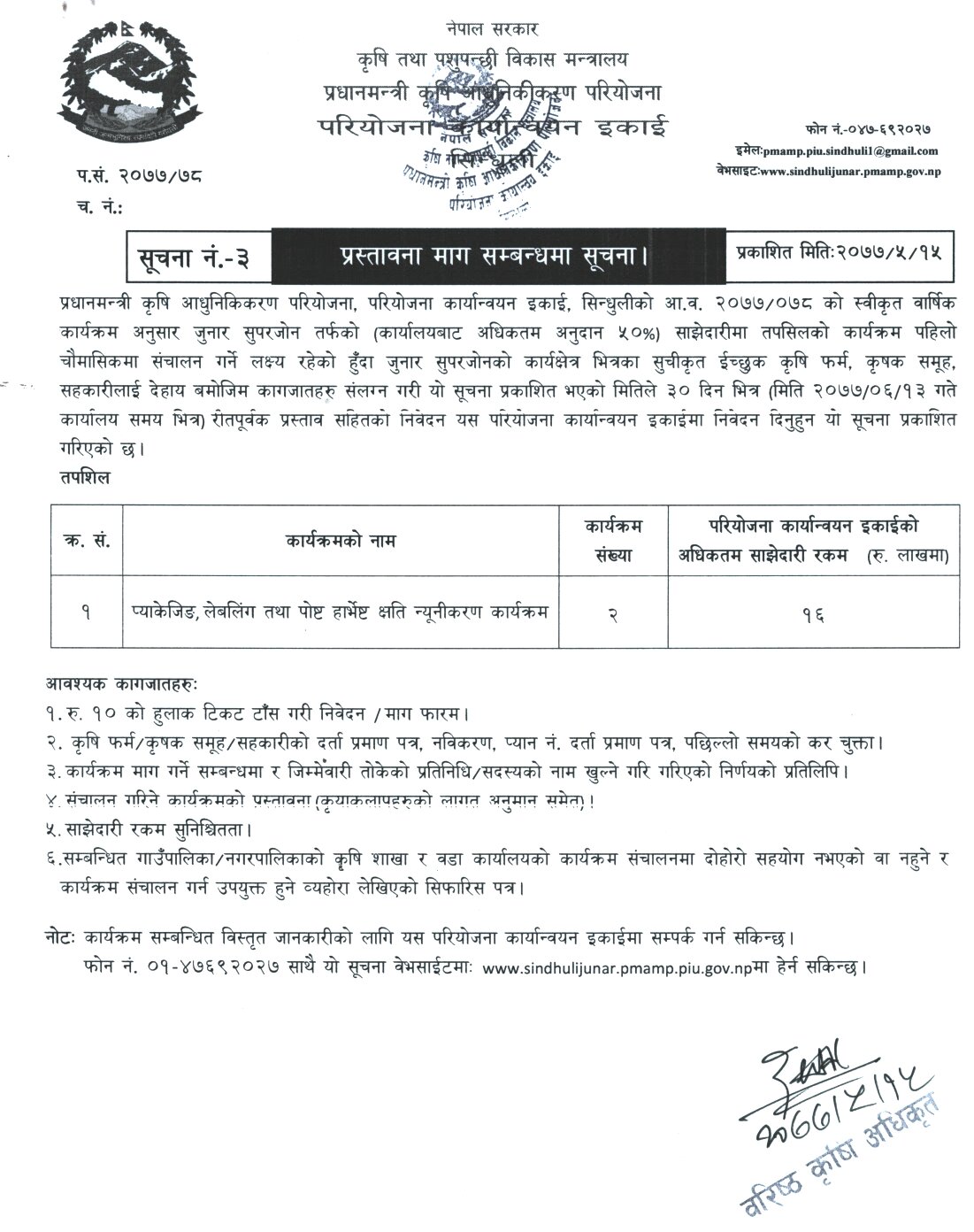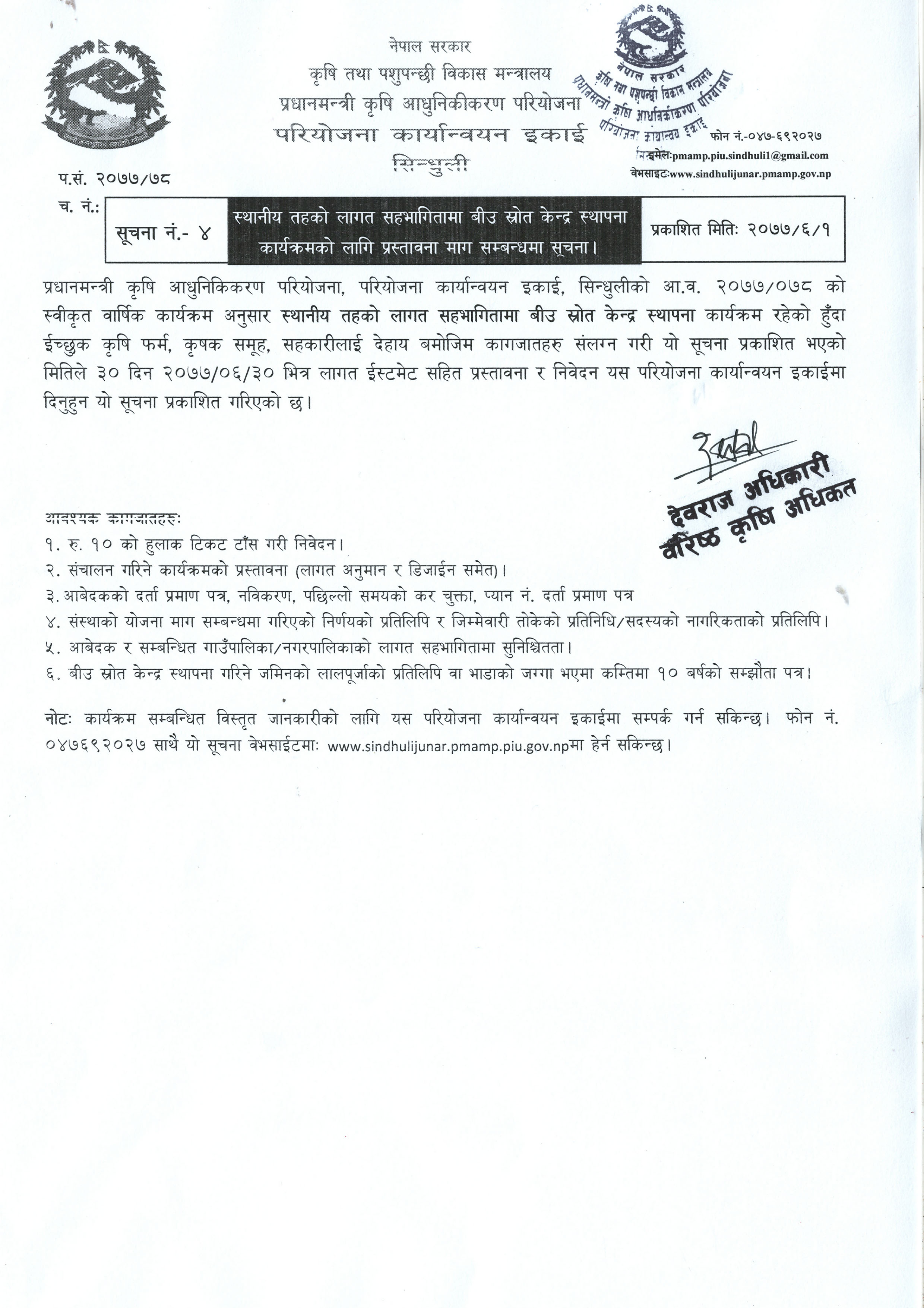 बीउ स्रोत केन्द्र स्थापनाको लागि प्रस्तावना माग सम्बन्धि सूचना