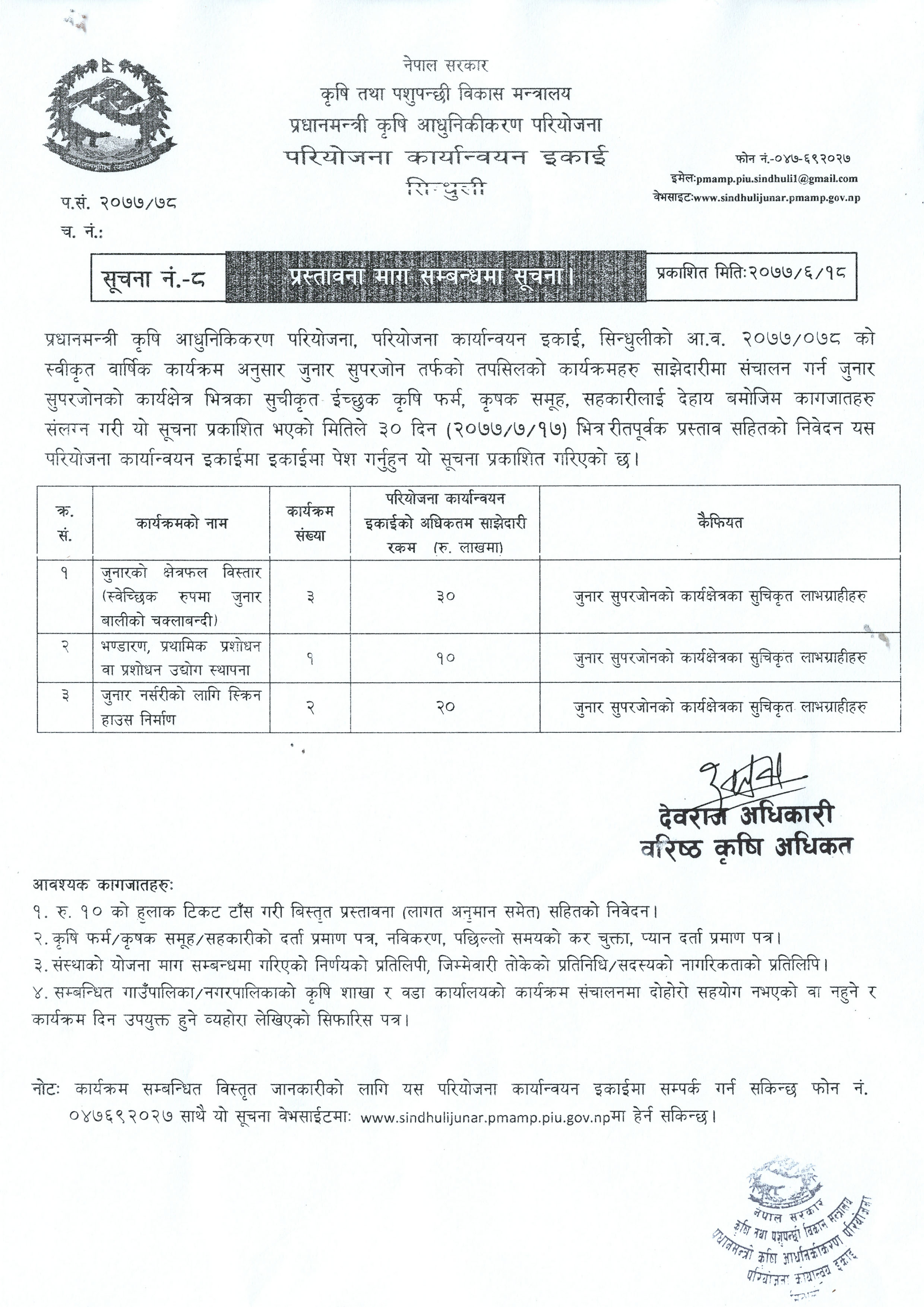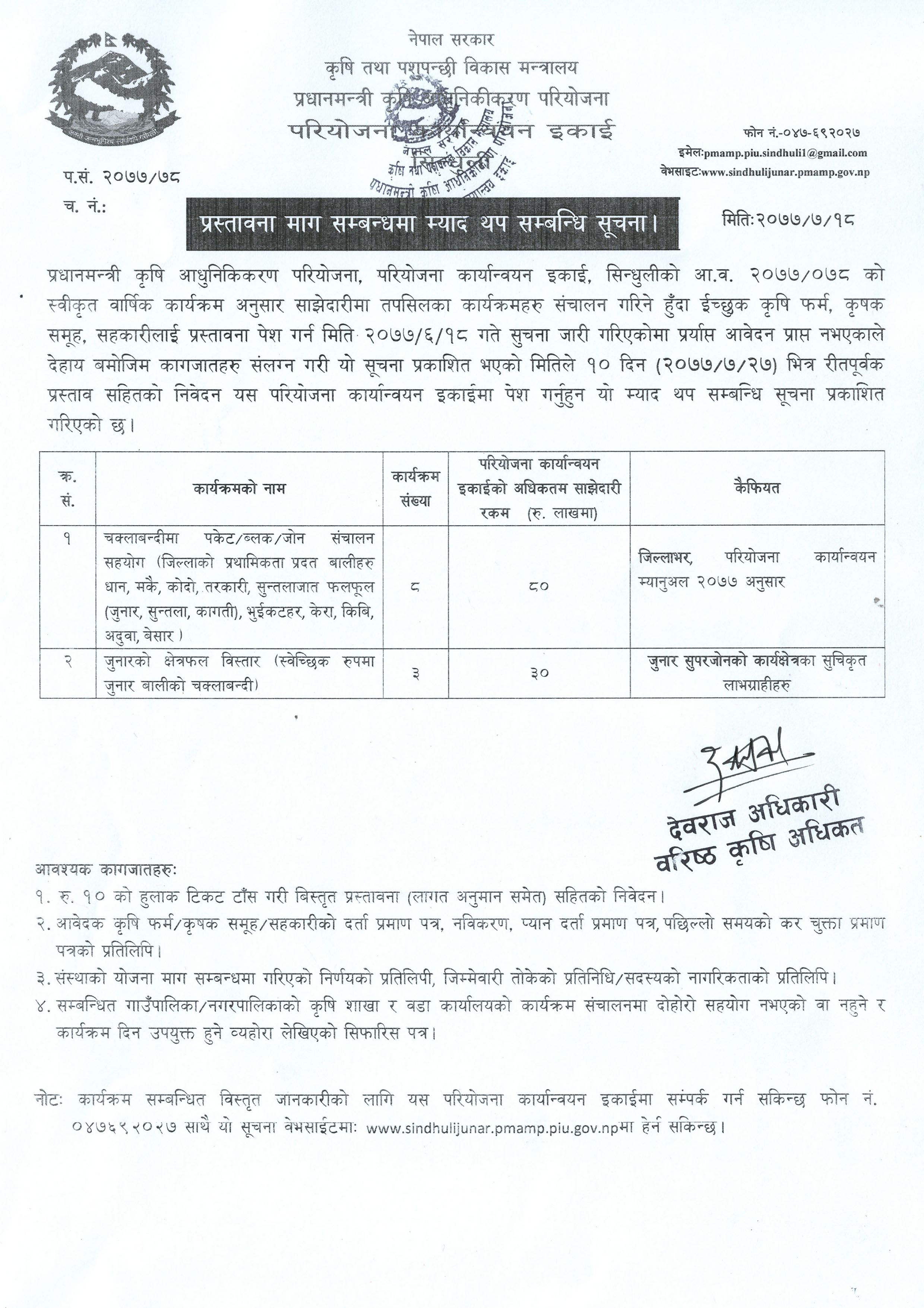 आ व २०७९/८० को विभिन्न कार्यक्रमहरुको प्रस्तावना माग सम्वन्धि सुचना
