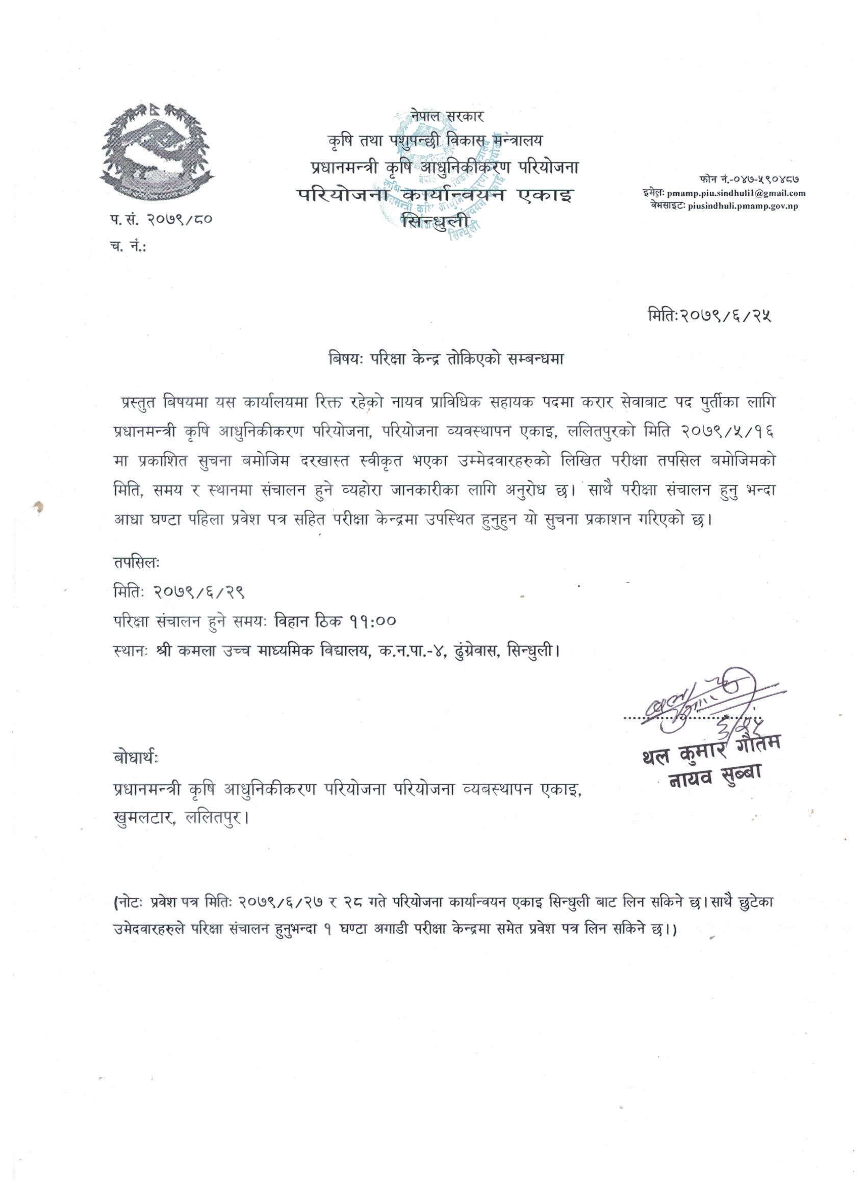 नायव प्राविधिक साहायक पदको परीक्षा कार्यक्रम सम्वन्धि सुचना