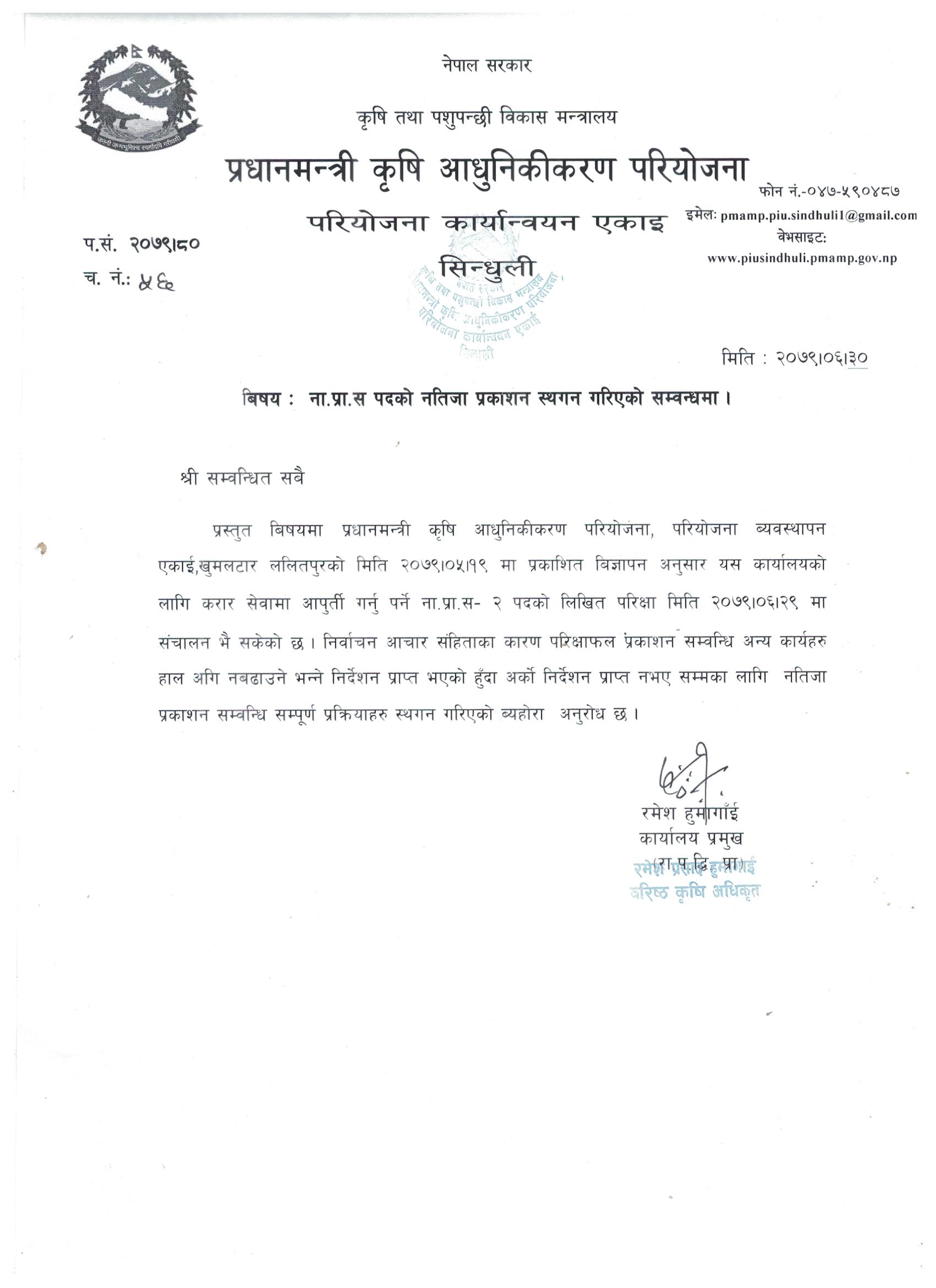 नायव प्राविधिक साहायक पदको नतिजा प्रकाशन स्थगित गरिएको सम्वन्धमा ।
